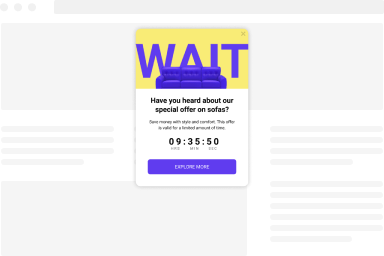 Trigger popups on page load to showcase deals and promotions. Incorporate FOMO with countdown timers to instill urgency.